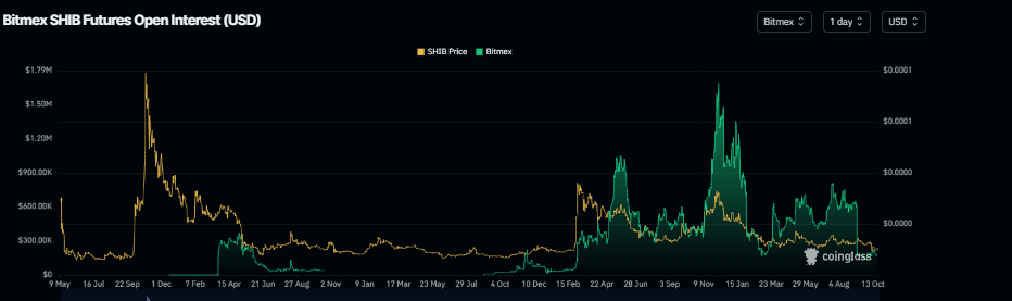 Gráfico de interés abierto de SHIB. Fuente: Coinglass
