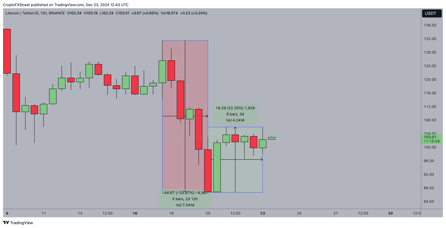 Sin embargo, los operadores alcistas comprando en la caída dominaron los mercados de LTC durante el fin de semana, impulsando los precios un 22% para recuperar brevemente los 105$ en las primeras horas del lunes.