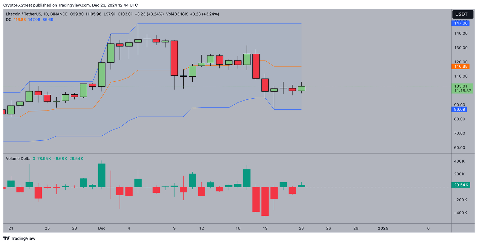 - El precio de Litecoin tocó brevemente el nivel de 105$ el lunes, rebotando un 22% desde el mínimo de un mes de 87$ registrado durante el desplome del mercado el 20 de diciembre.