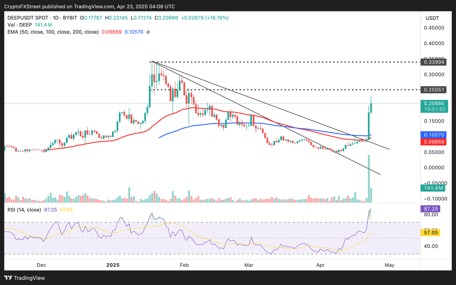 - DeepBook se dispara y alcanza condiciones extremas de sobrecompra mientras los alcistas presionan incansablemente por ganancias, apuntando a 0.25$ y 0.34$.