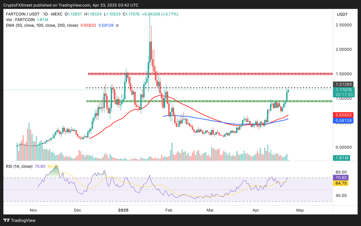 - Fartcoin extiende su movimiento alcista por encima de 1.00$, probando la resistencia a corto plazo en 1.20$.