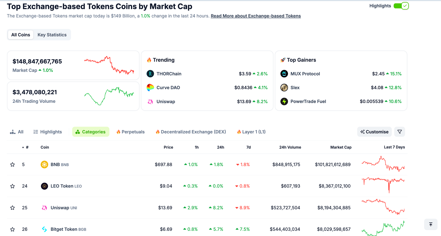 Los tokens nativos de intercambio, incluyendo Binance Coin (BNB), Uniswap (UNI) y Bitget (BGB) se recuperaron el viernes mientras los mercados de criptomonedas mostraban señales tempranas de rebote. ¿Podría esto desencadenar una fase de ruptura importante en los próximos días?