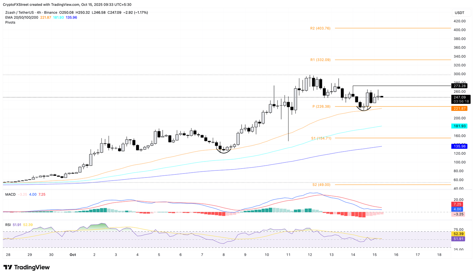 Mientras tanto, Zcash realiza un giro alcista desde la EMA de 50 períodos en el gráfico de 4 horas, lo que extiende la tendencia alcista por segunda vez este mes. En el momento de la redacción, ZEC realiza un movimiento lateral entre el nivel de Punto Pivote en 226$ y el pico del martes de 273$. Un cierre decisivo más allá de estos límites podría determinar la próxima tendencia alcista.