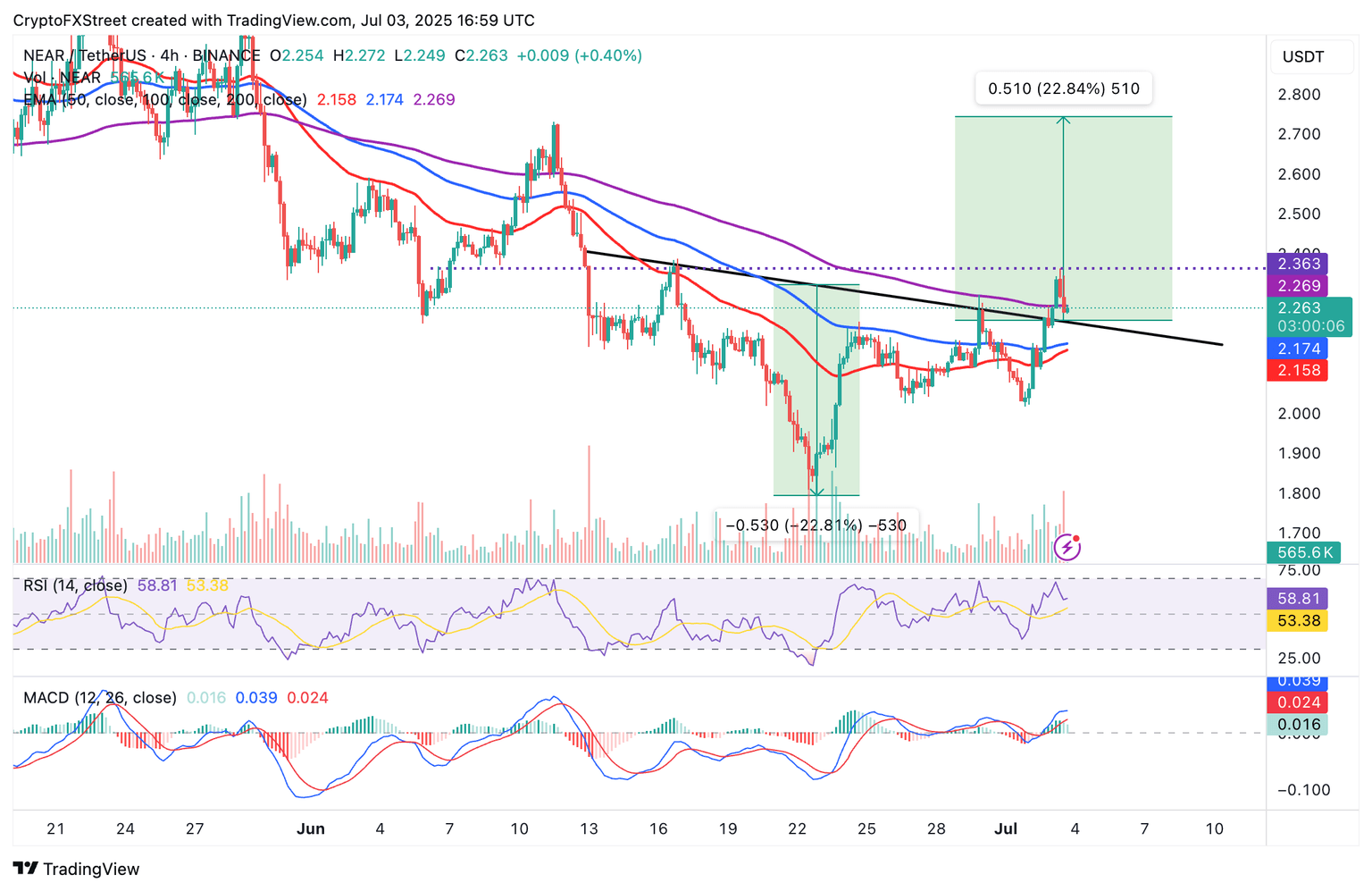 - Near Protocol apunta a moverse a 2.74$ tras un breakout de un patrón de hombro-cabeza-hombro invertido.