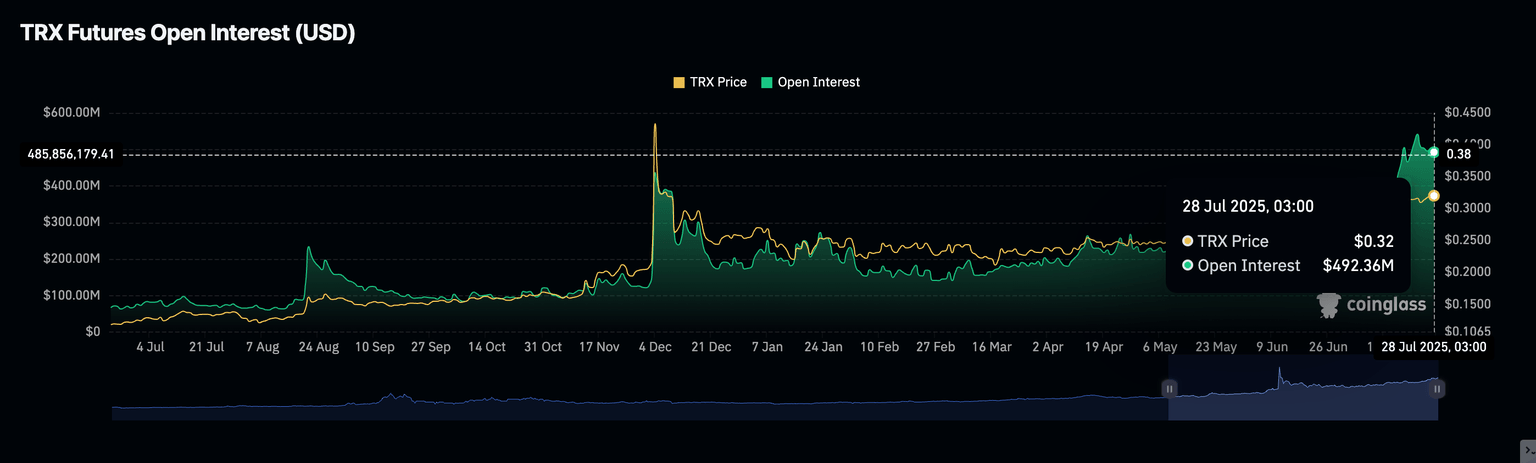 Interés abierto de futuros de TRON | Fuente: CoinGlass