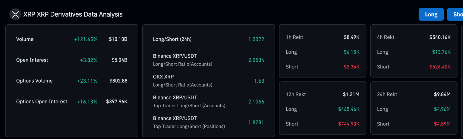 Datos del mercado de derivados de XRP | Fuente: CoinGlass