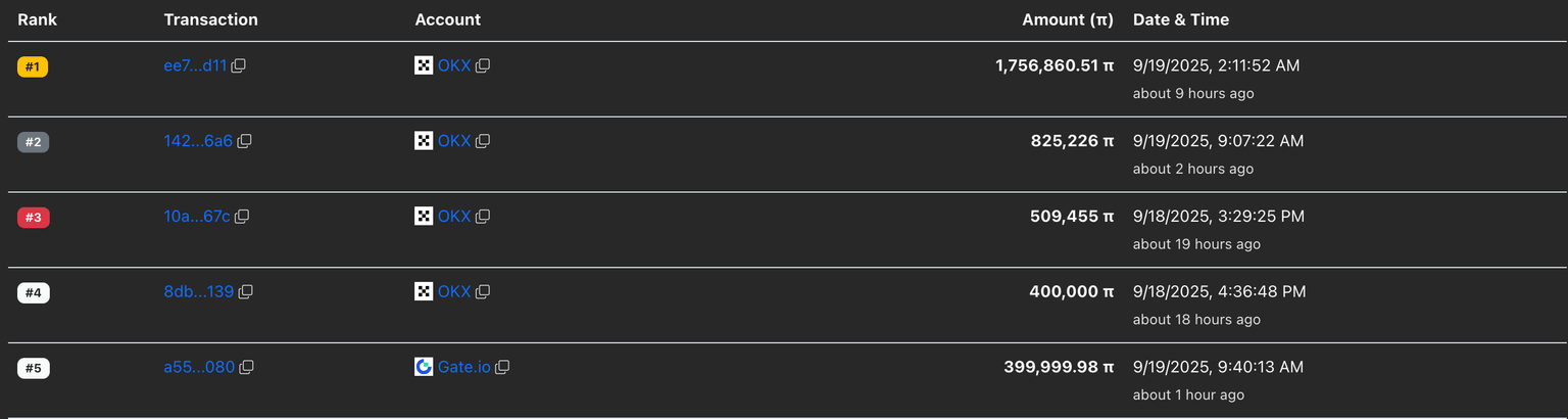 - Las transacciones de gran volumen en las últimas 24 horas indican que los inversores están acumulando tokens PI.