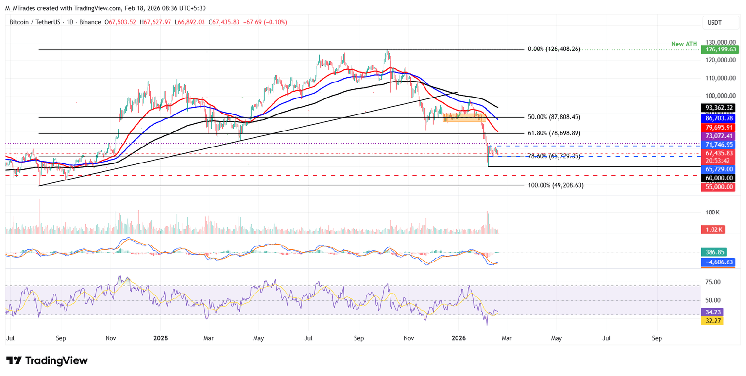 Si el BTC cierra por debajo del nivel de consolidación inferior en 65.729$, podría extender la caída hacia el nivel de soporte clave en 60.000$.