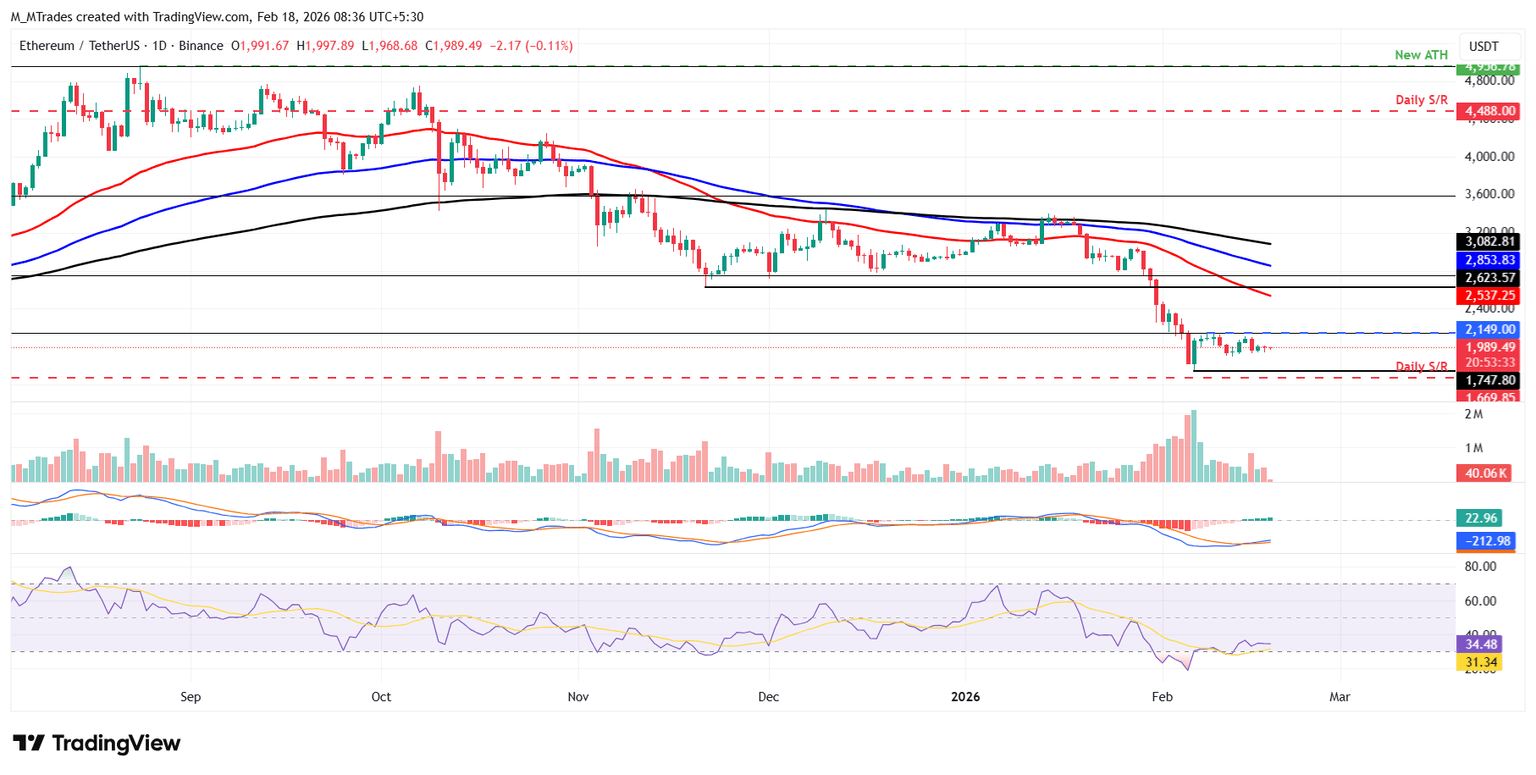 El precio del Ethereum fue rechazado cerca del rango superior de consolidación en 2.149$ el domingo y disminuyó un 5.75% ese día. El ETH ha estado rondando el nivel de 2.000$ durante los últimos dos días y, a partir del miércoles, permanece allí.