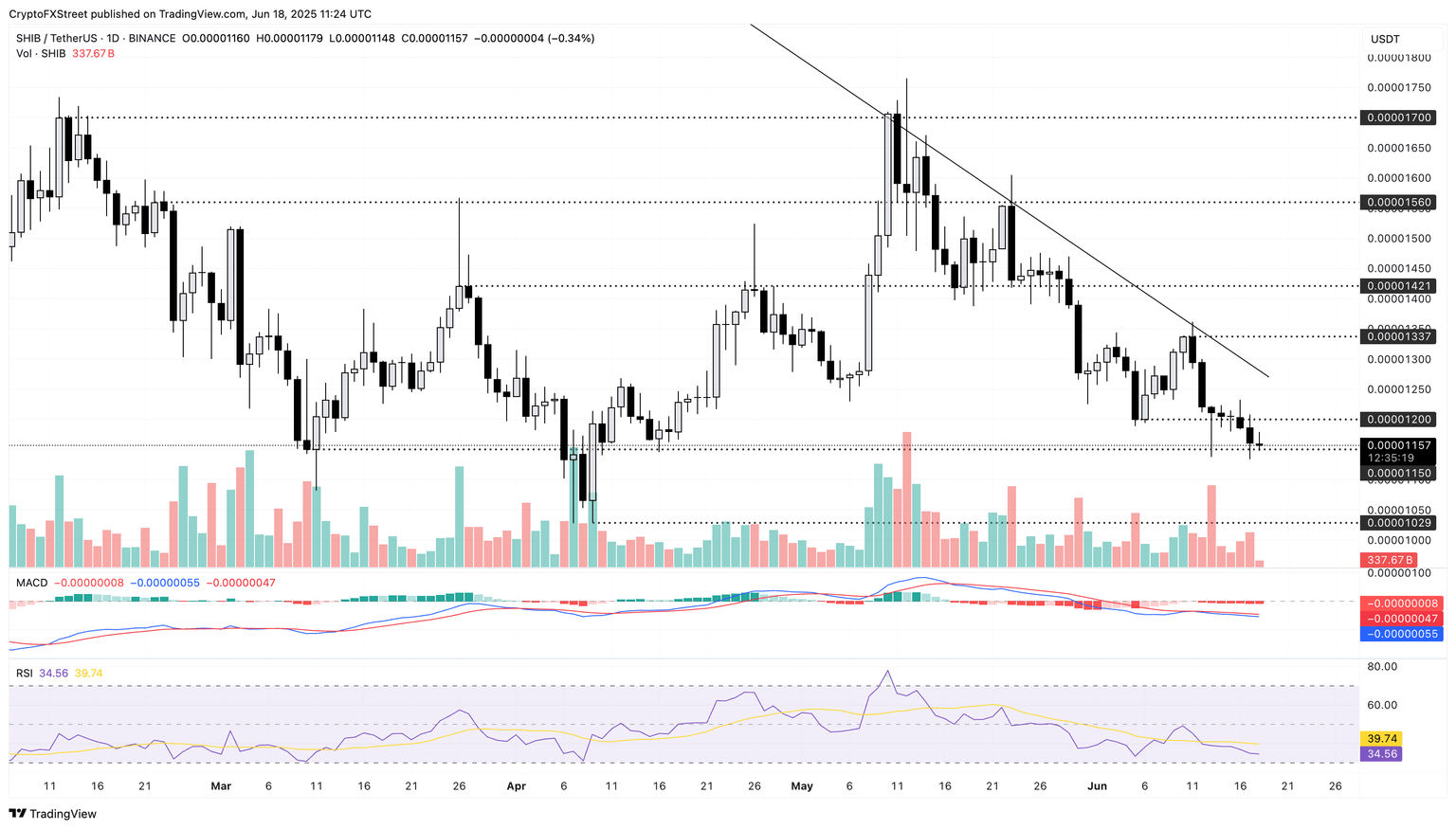 A pesar de evitar un cierre diario por debajo del soporte de $0.00001150, las posibilidades de reversión de Shiba Inu se están reduciendo. Un cierre por debajo de este nivel podría prolongar la caída de SHIB hacia $0.00001029, el mínimo del año hasta la fecha.