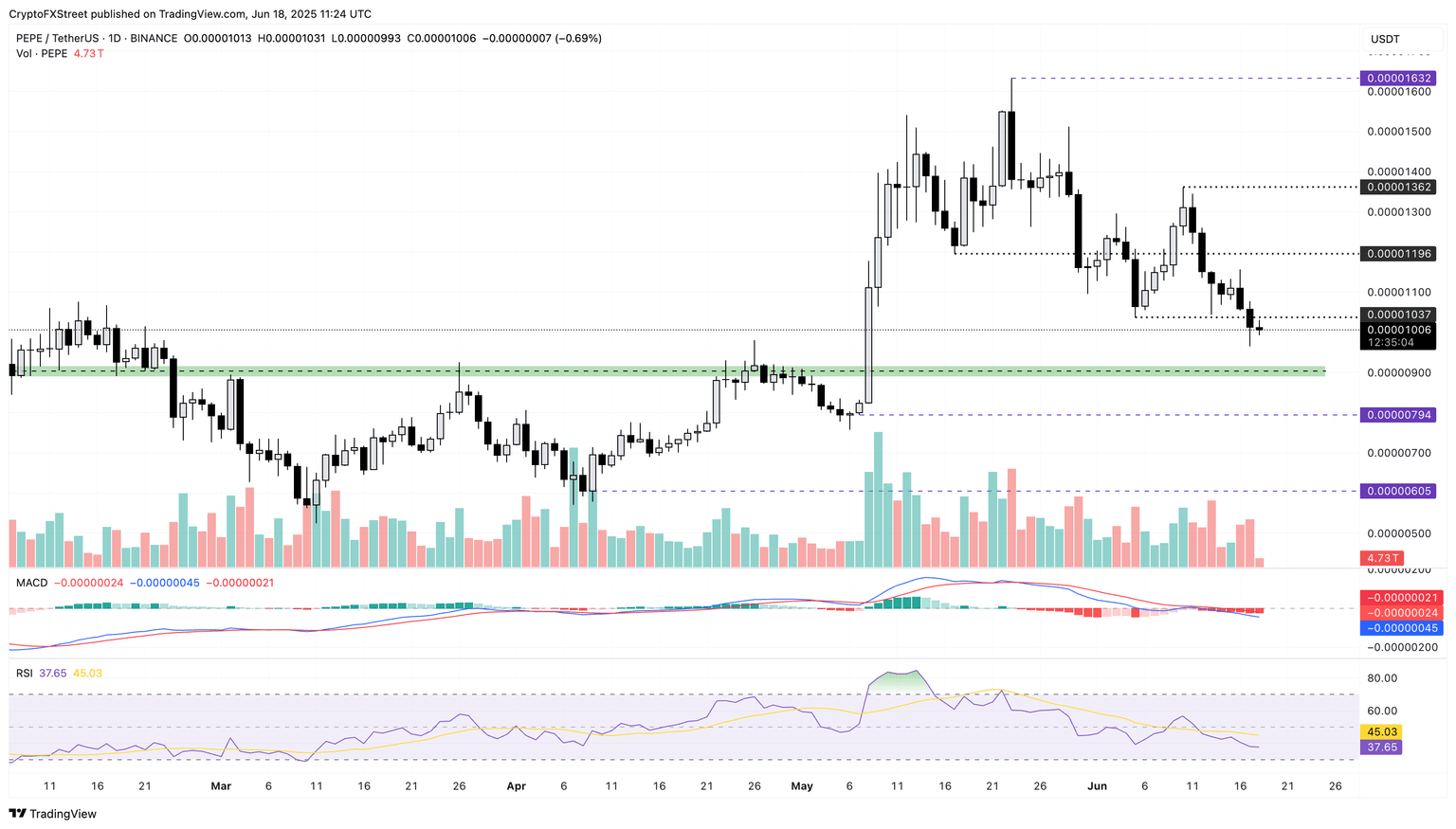 - Pepe se aferra a un nivel de soporte psicológico crucial mientras que la creciente presión de venta podría catalizar la próxima caída.
