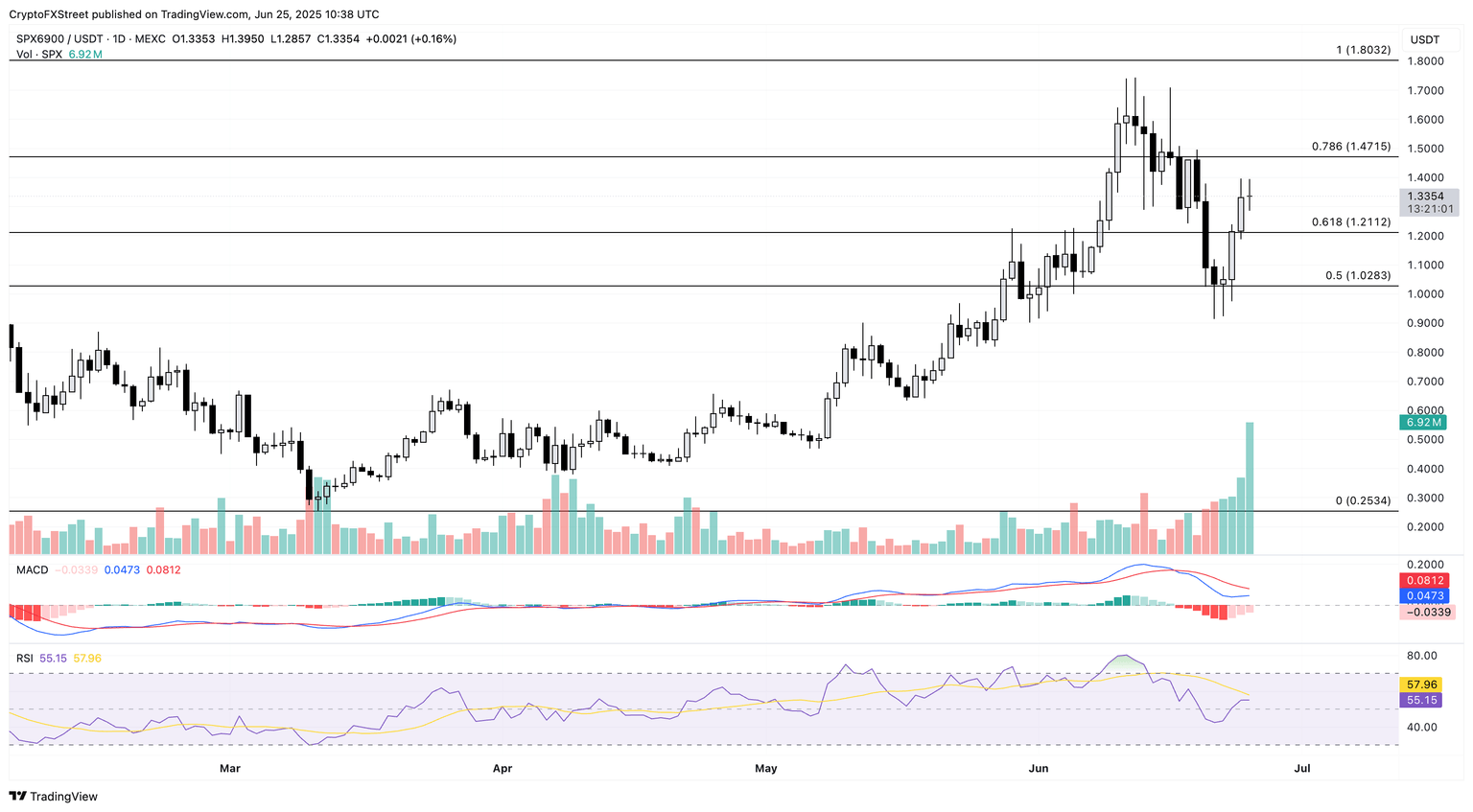 Sin embargo, si SPX cierra por debajo del nivel del 61.8% en 1.21$, la moneda meme podría volver a probar la cifra redonda de 1.00$.