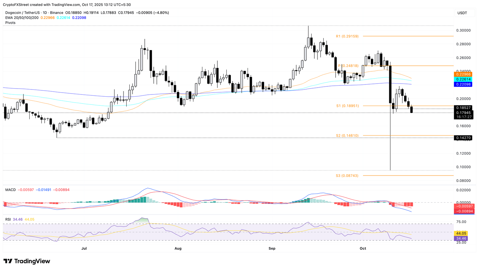 - Dogecoin cae por debajo de 0.18000$, marcando su cuarto día consecutivo de pérdidas.