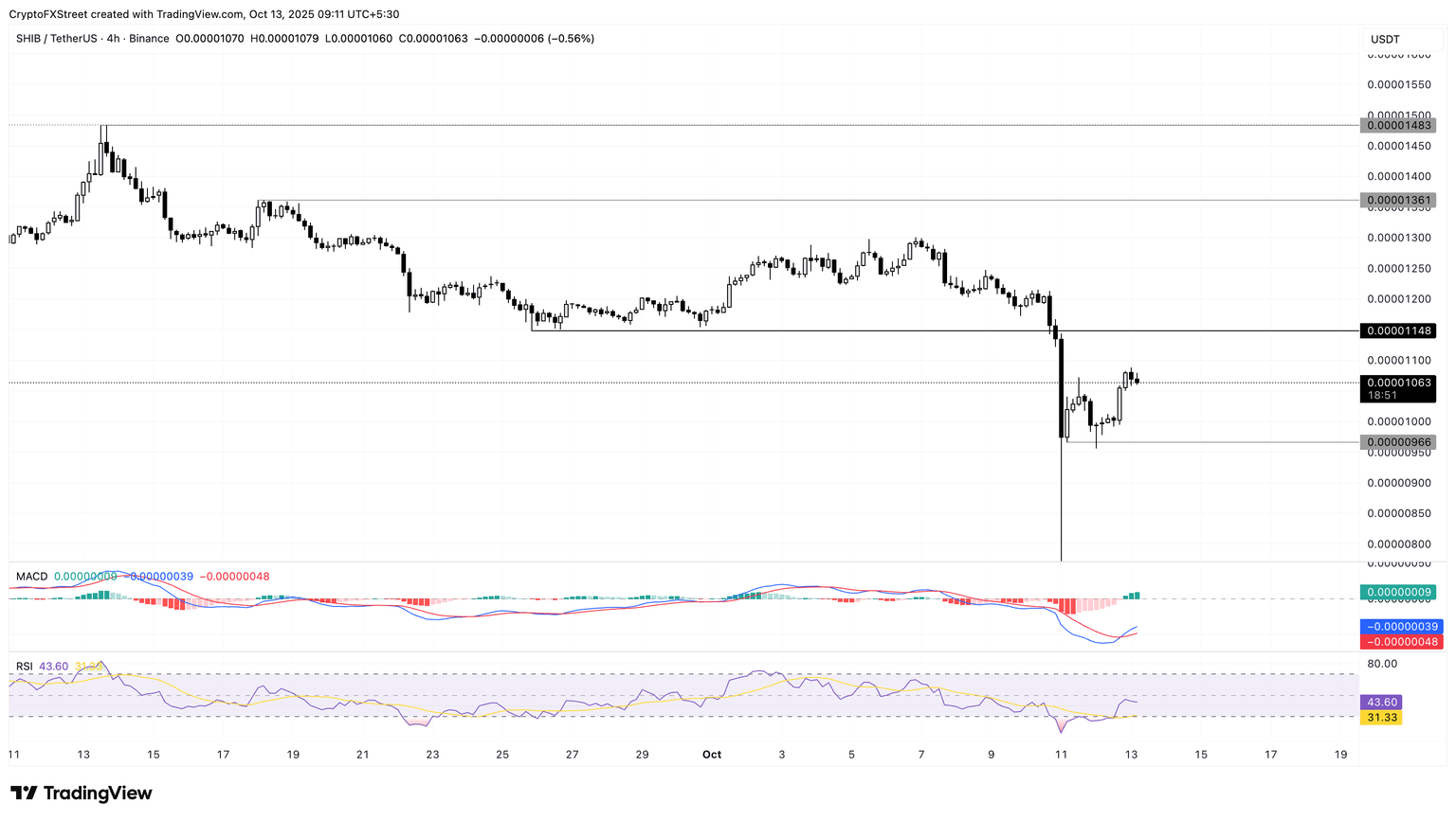 Por otro lado, si SHIB retrocede por debajo de 0.00001000$, podría amenazar el mínimo de 0.00000966$, marcado por la primera vela positiva de 4 horas el viernes.
