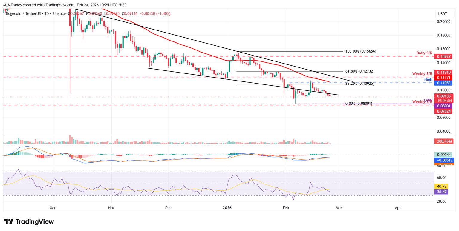 Si DOGE continúa su tendencia a la baja, podría extender la corrección hacia el mínimo del 6 de febrero de 0.080$. Un cierre por debajo de este nivel podría extender las pérdidas hacia el siguiente soporte semanal en 0.078$.