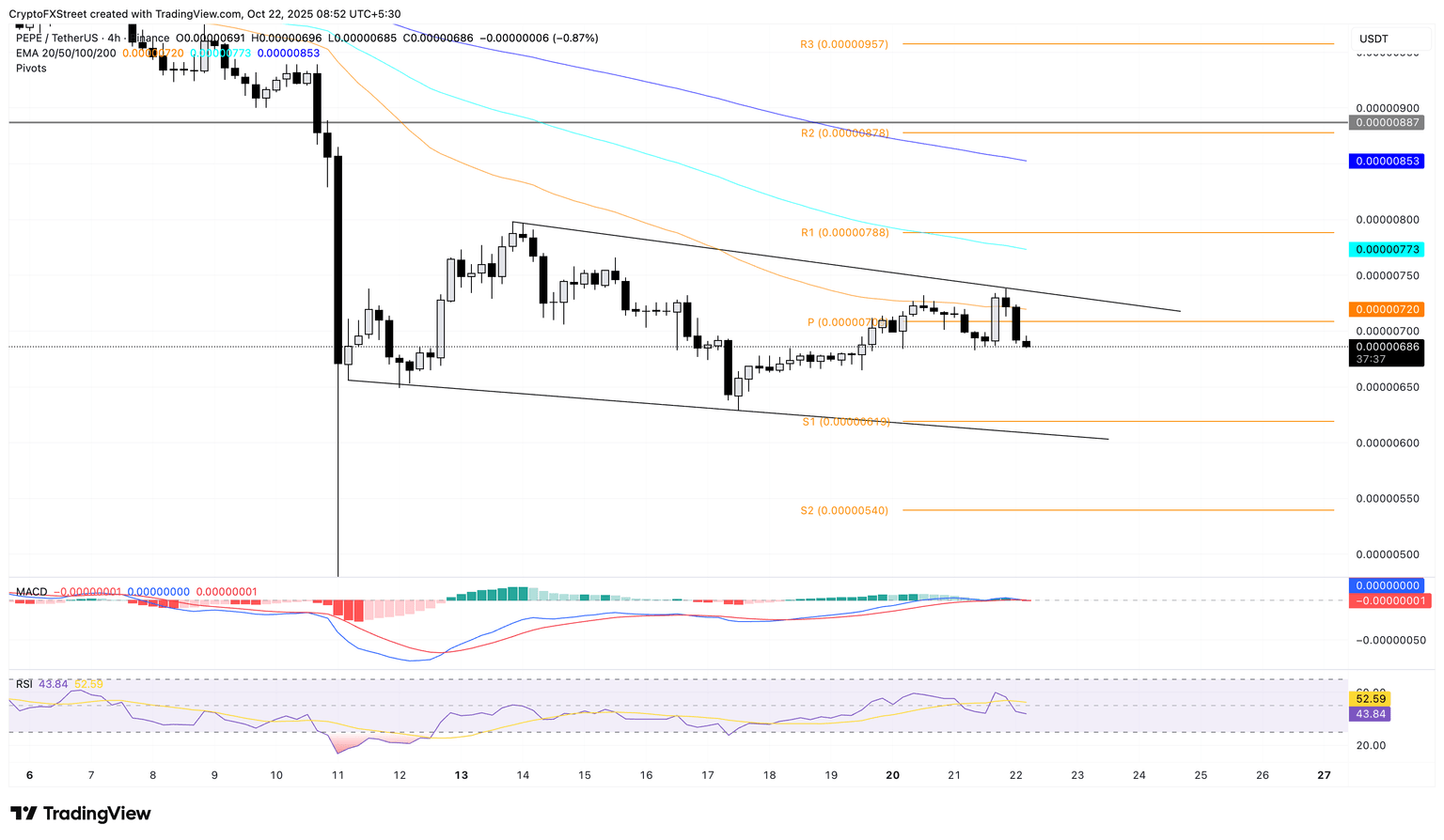 En el lado positivo, si PEPE supera el máximo del martes en 0.00000738$, podría extender la tendencia alcista hasta el Punto Pivote R1 en 0.00000788$.
