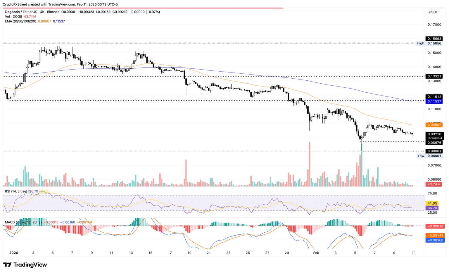 El soporte inmediato para Dogecoin se encuentra en 0.08675$, y un cierre por debajo de esto podría extender la caída hasta el mínimo del 6 de febrero en 0.080$.