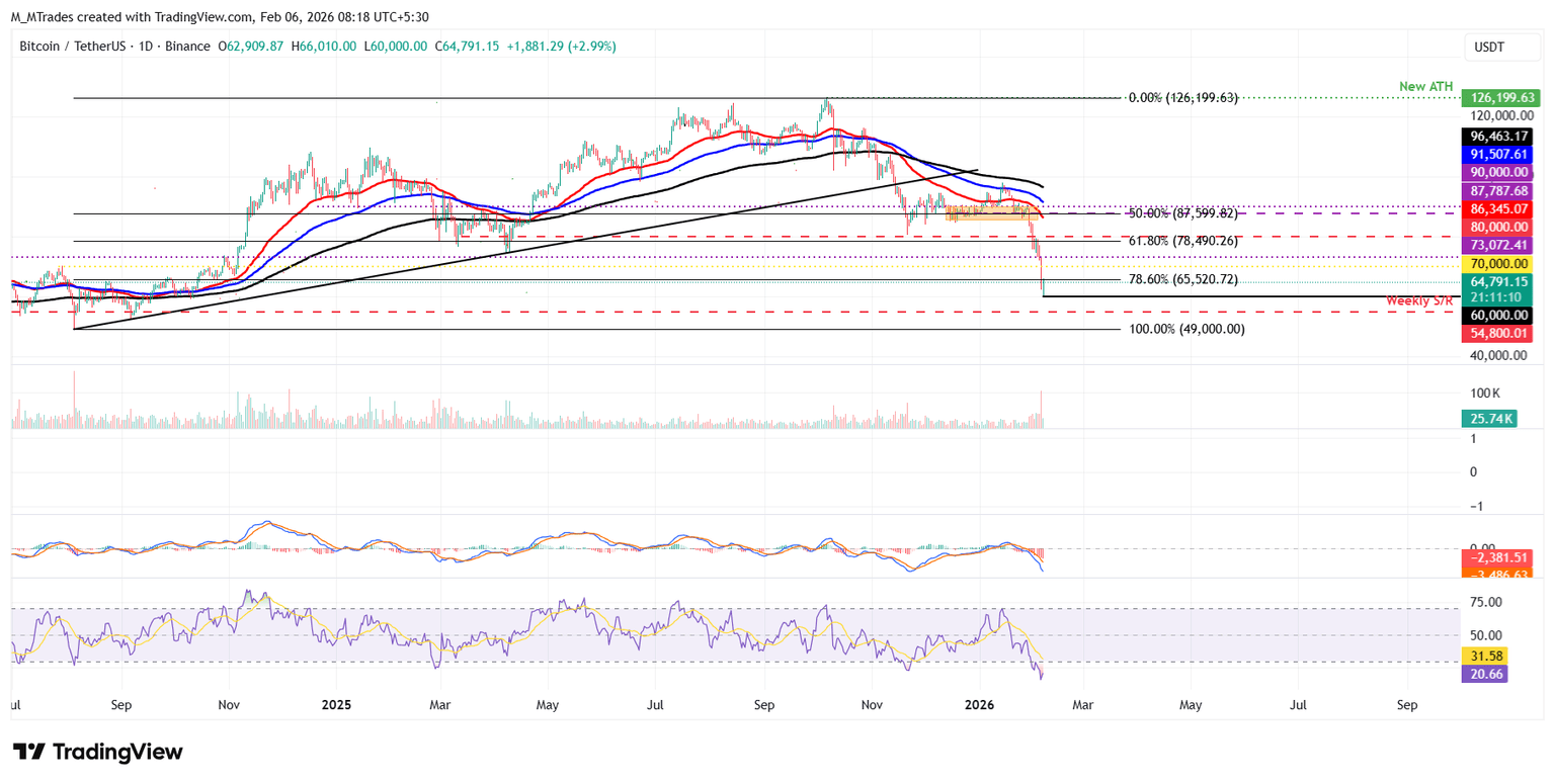 El precio de Bitcoin ha colapsado más del 15% hasta ahora esta semana, después de corregir un 11% la semana anterior. Al momento de escribir el viernes, BTC ha alcanzado un mínimo de 60.000$, un nivel no visto desde mediados de octubre de 2024.