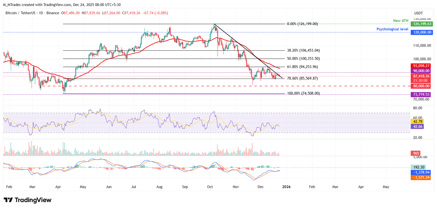El precio del Bitcoin fue puesto a prueba en el nivel psicológico de 90.000$ el lunes y disminuyó ligeramente al día siguiente. Al momento de escribir el miércoles, BTC fluctúa alrededor de 87.400$.