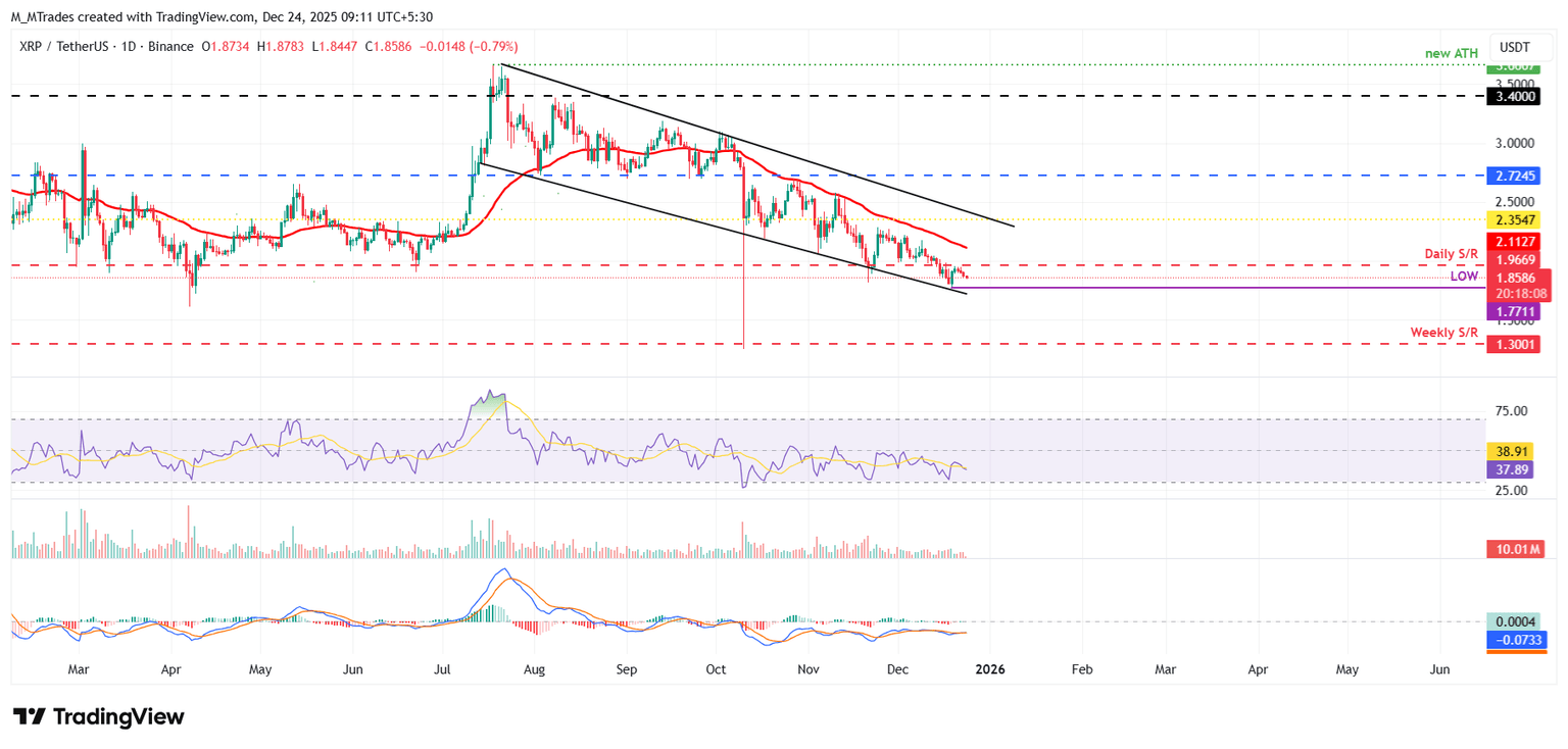 Si XRP continúa su retroceso, podría extender la caída hacia el mínimo del 19 de diciembre de 1.77$.