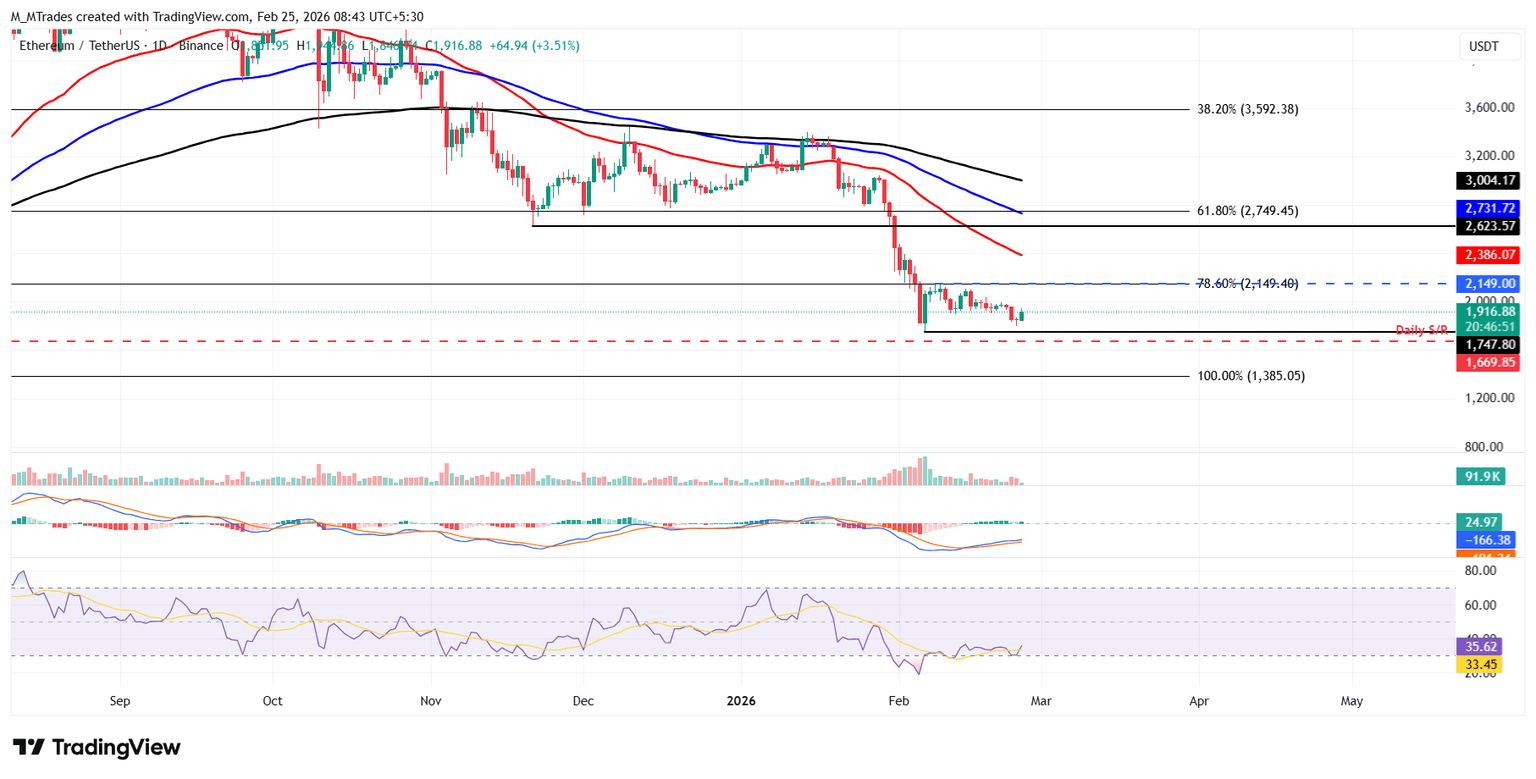 Si ETH continúa su tendencia a la baja y cierra por debajo de 1.800 $, podría extender la caída hacia el rango de consolidación inferior en 1.747 $. Un cierre firme por debajo de este nivel podría extender las pérdidas hacia el soporte diario en 1.669 $.