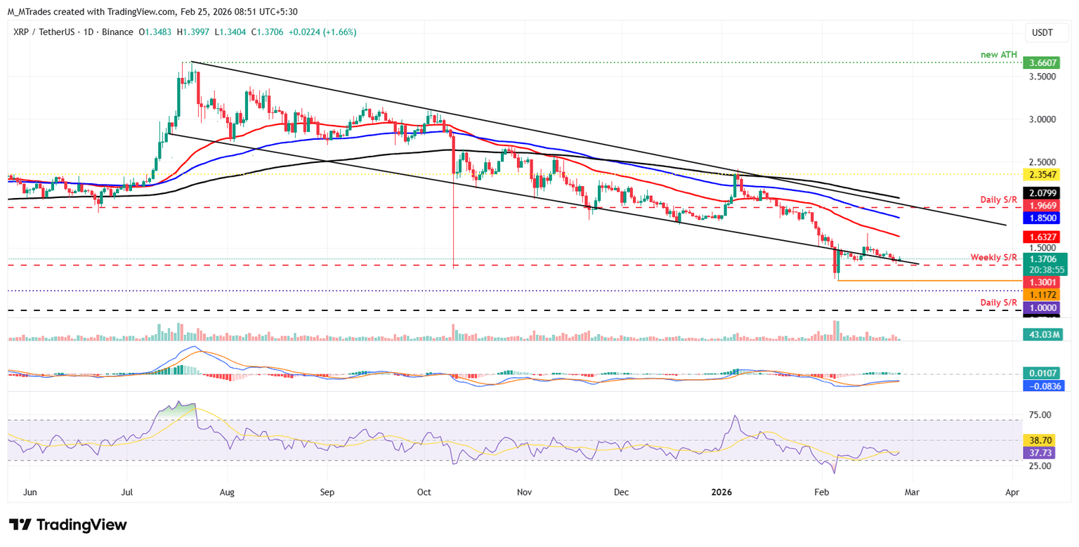 - XRP se recupera ligeramente después de volver a probar su soporte semanal en 1.30 $, aunque la presión bajista más amplia sigue intacta.