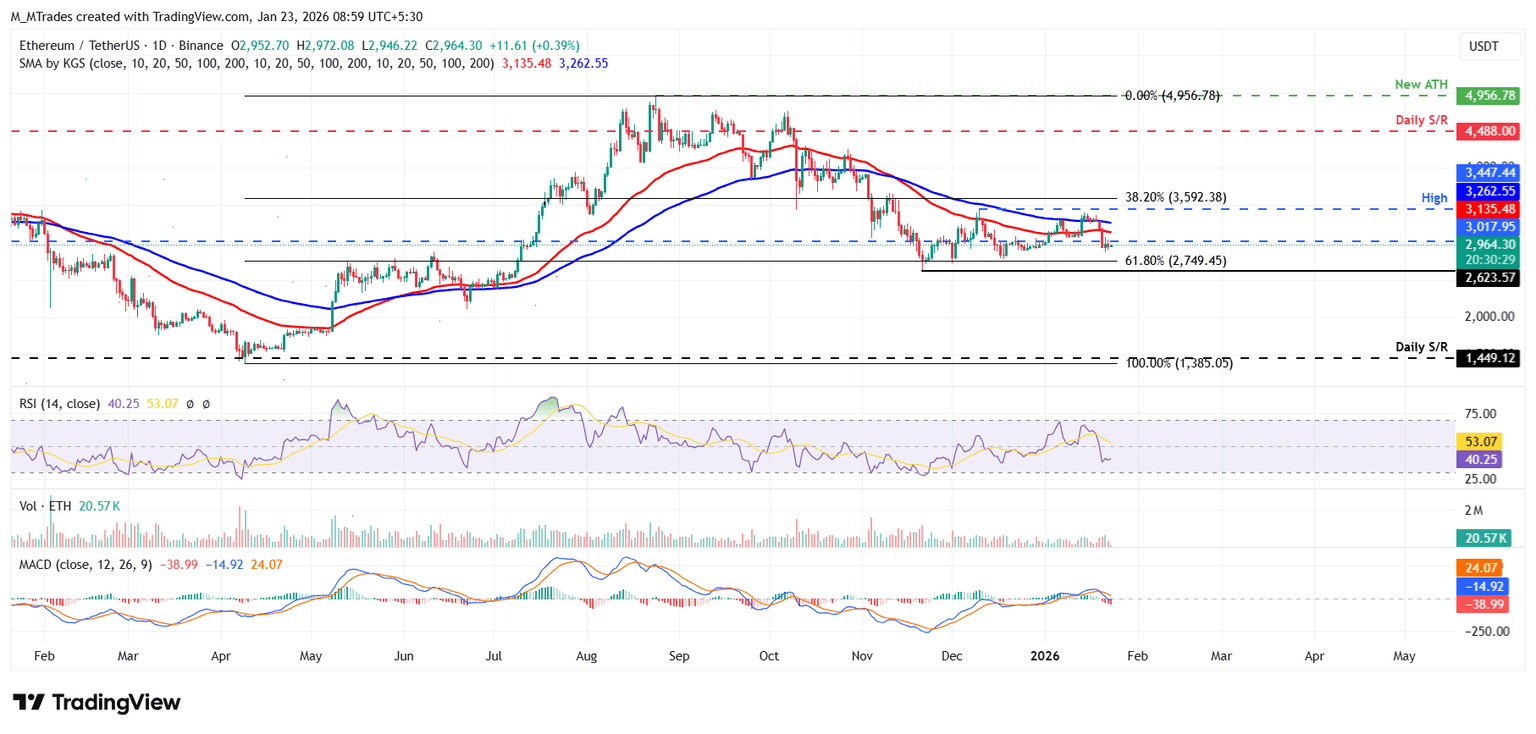 - El precio de Ethereum se estabiliza alrededor de 2.960$ después de cerrar por debajo del soporte diario a principios de esta semana.