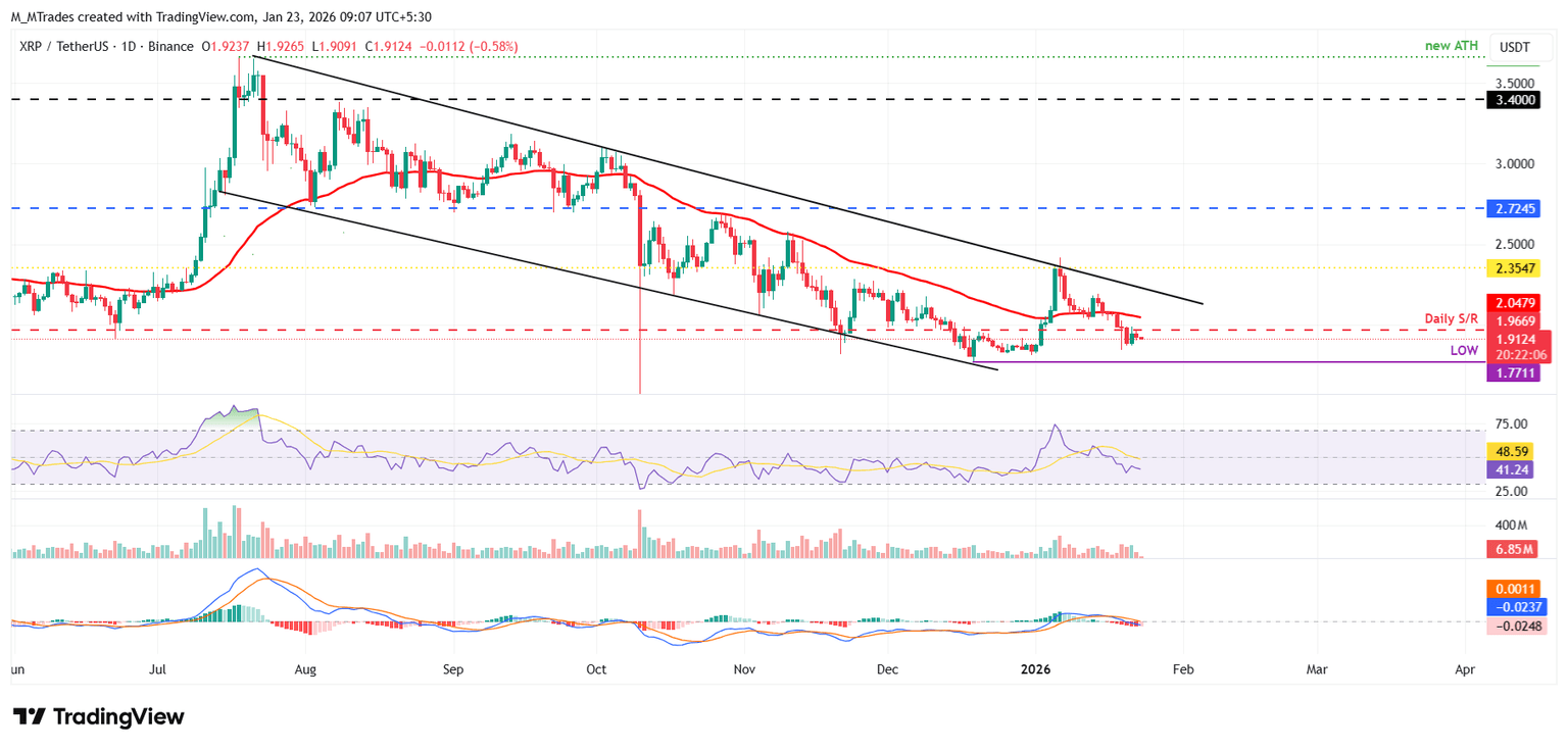 - XRP cae por debajo de 1.91$ tras no lograr cerrar por encima de la resistencia clave.