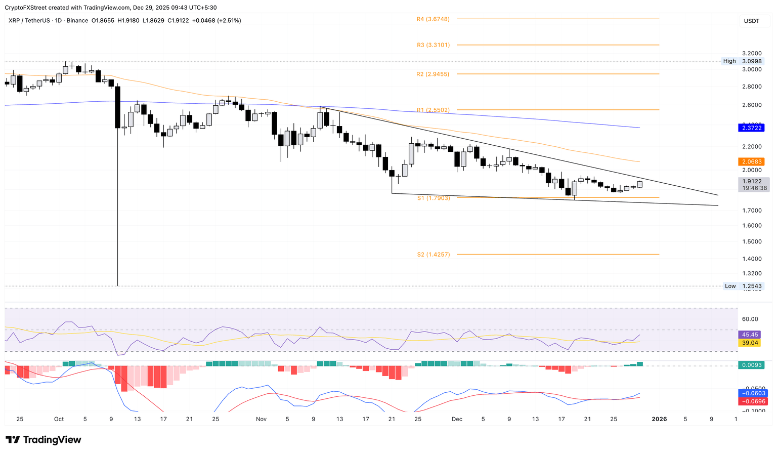 XRP se recupera dentro de una cuña descendente, apuntando a la ruptura de 2$
