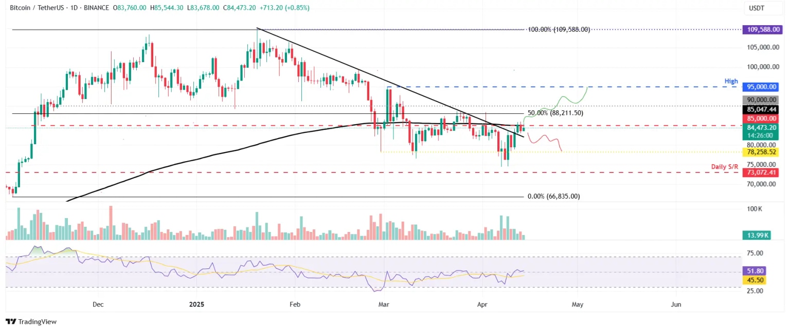 Pronóstico del Precio del Bitcoin: El BTC vuelve a probar la resistencia clave en los 85K, ¿ruptura hacia los 90K o rechazo hacia los 78K?