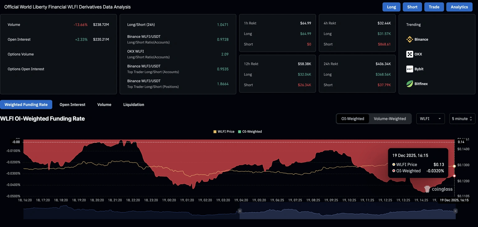 World Liberty Financial (WLFI) cotiza alrededor de 0.13$ en el momento de la prensa el viernes, con un rebote de casi el 3% desde una línea de tendencia de soporte clave. La recuperación se alinea con la votación comunitaria en curso sobre los fondos del tesoro de WLFI para impulsar la adopción de la stablecoin de 1.000$. Sin embargo, el sentimiento minorista en torno a WLFI sigue siendo mixto, ya que los flujos de capital aumentan mientras persiste el sentimiento bajista.