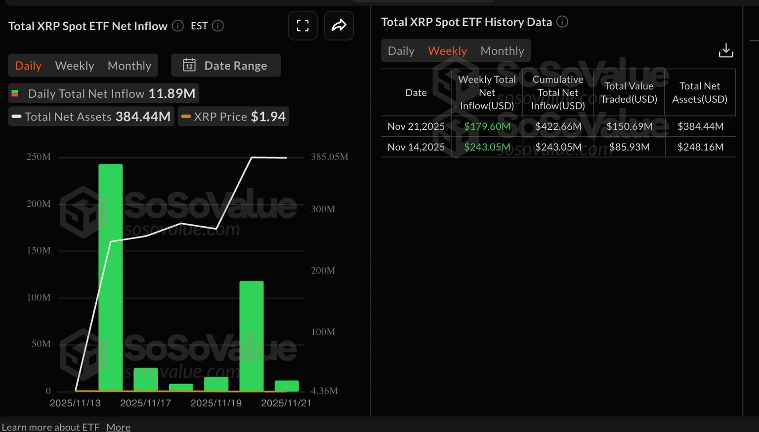 XRP recupera los 2.00$ en medio de entradas de ETF, mercado de derivados estable