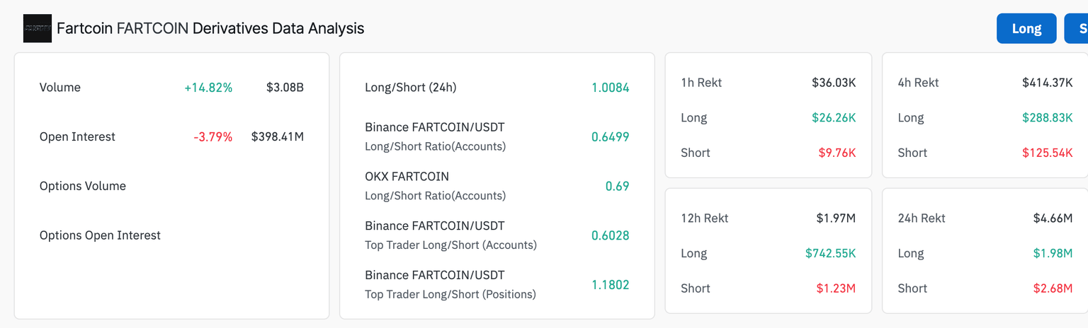 Datos de análisis de derivados de Fartcoin | Fuente: Coinglass