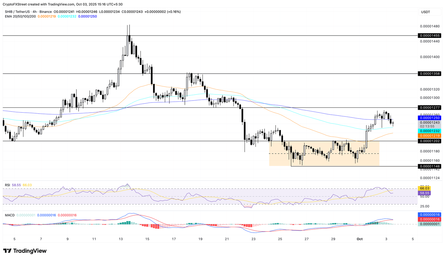 - La recuperación de Shiba Inu revierte para probar la EMA de 100 períodos.