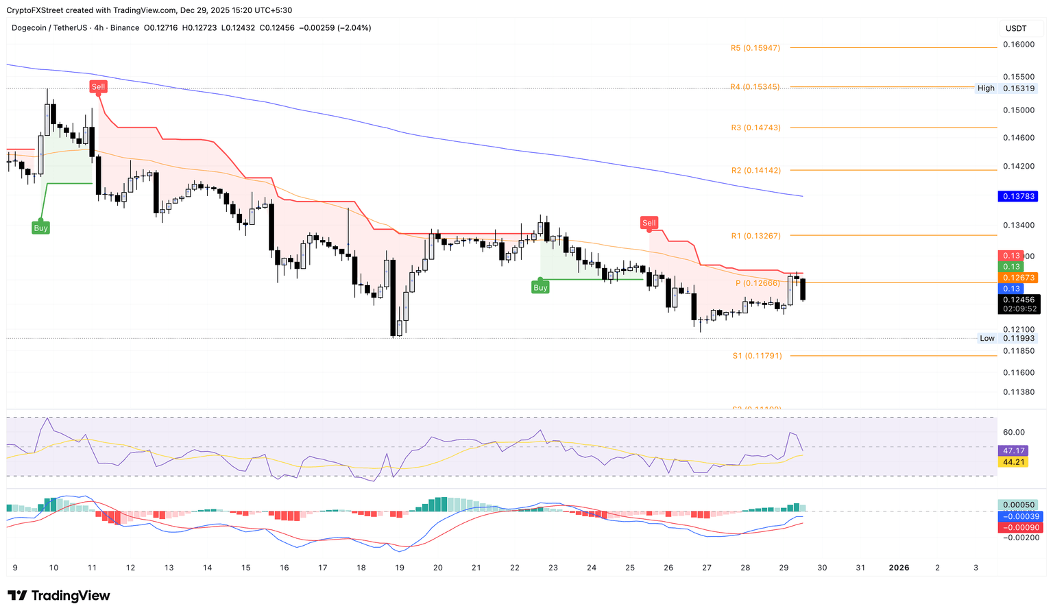 Si DOGE cae por debajo de 0.1266$, podría volver a probar el mínimo del 18 de diciembre de 0.1199$.