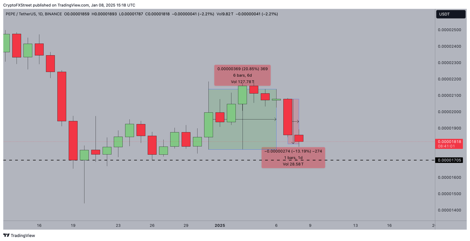 Pronóstico del Precio de PEPE: Los bajistas podrían forzar una reversión a 0.000010$