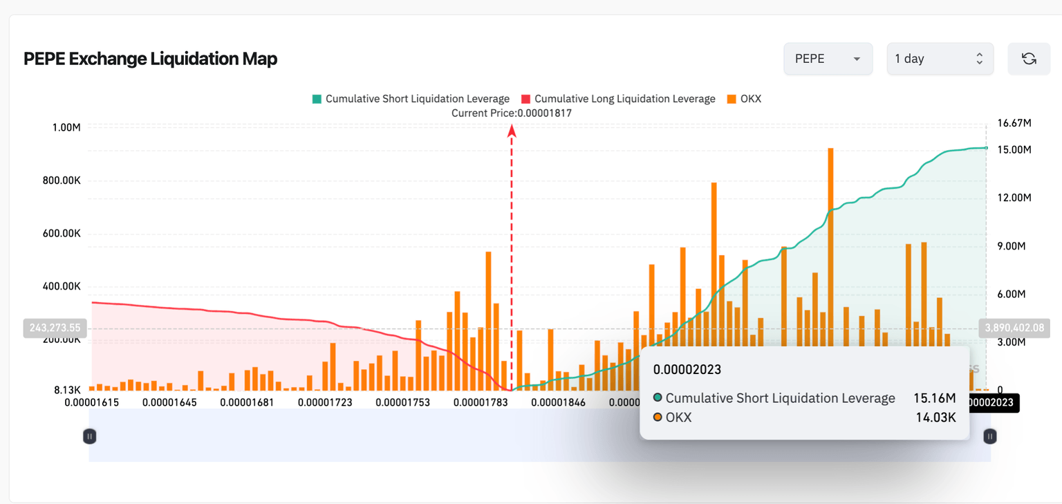 - Las posiciones cortas apalancadas en PEPE superaron los 15.1 millones de dólares, excediendo los contratos activos en más del 85%.