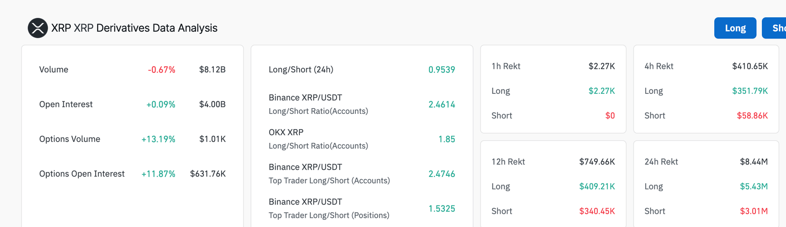 Interés Abierto de derivados de XRP | Fuente: Coinglass