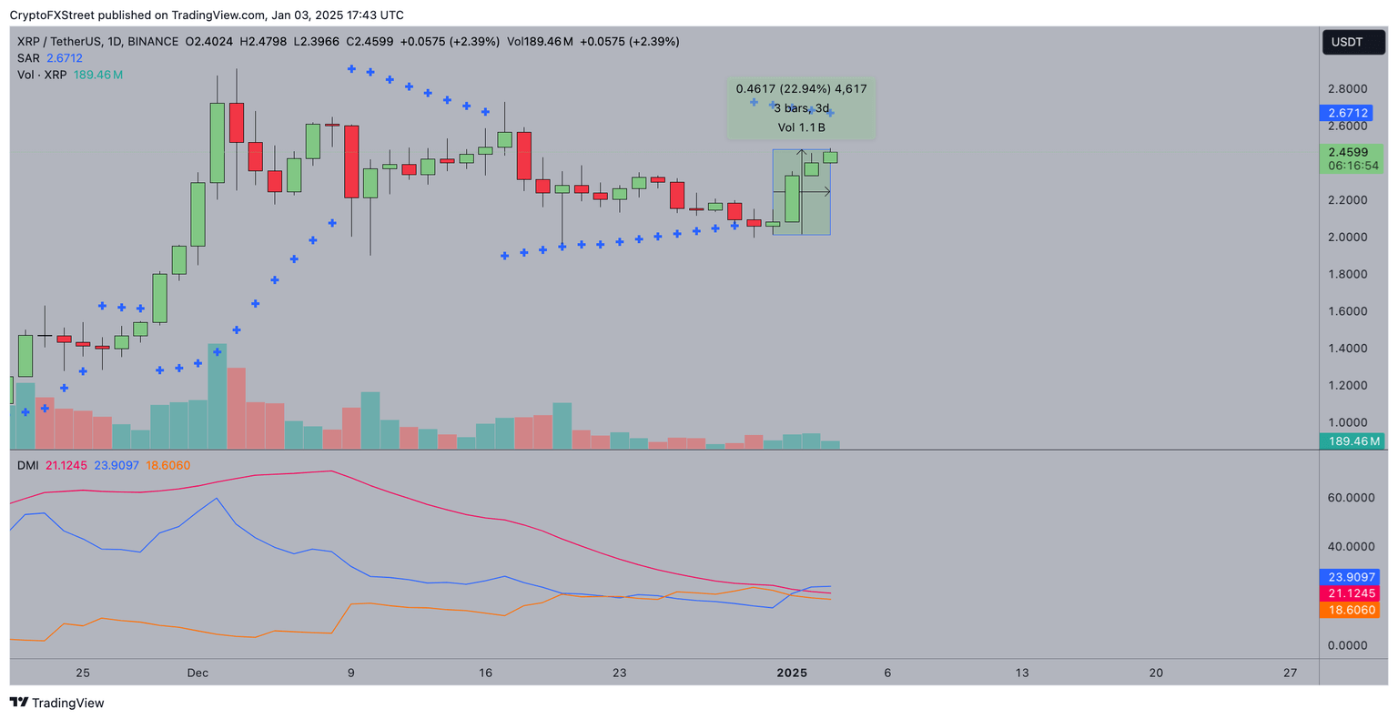 - El precio de Ripple (XRP) subió un 22% en 3 días para alcanzar los 2.47$ el viernes, ya que los mercados de criptomonedas comenzaron 2025 con una nota positiva.