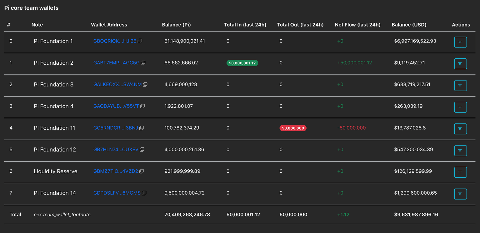 Las carteras del equipo central de Pi, que anteriormente habían registrado grandes flujos de salida, realizaron un cambio estratégico de 50 millones de tokens PI, sin flujos de salida significativos en las últimas 24 horas. Esto señala una reducción de los flujos de salida de la Fundación Pi, lo que limita la presión a la baja. Si la tendencia continúa, un derrame de suministro limitado y flujos de salida constantes de los CEX podrían apoyar la recuperación a corto plazo del token PI.