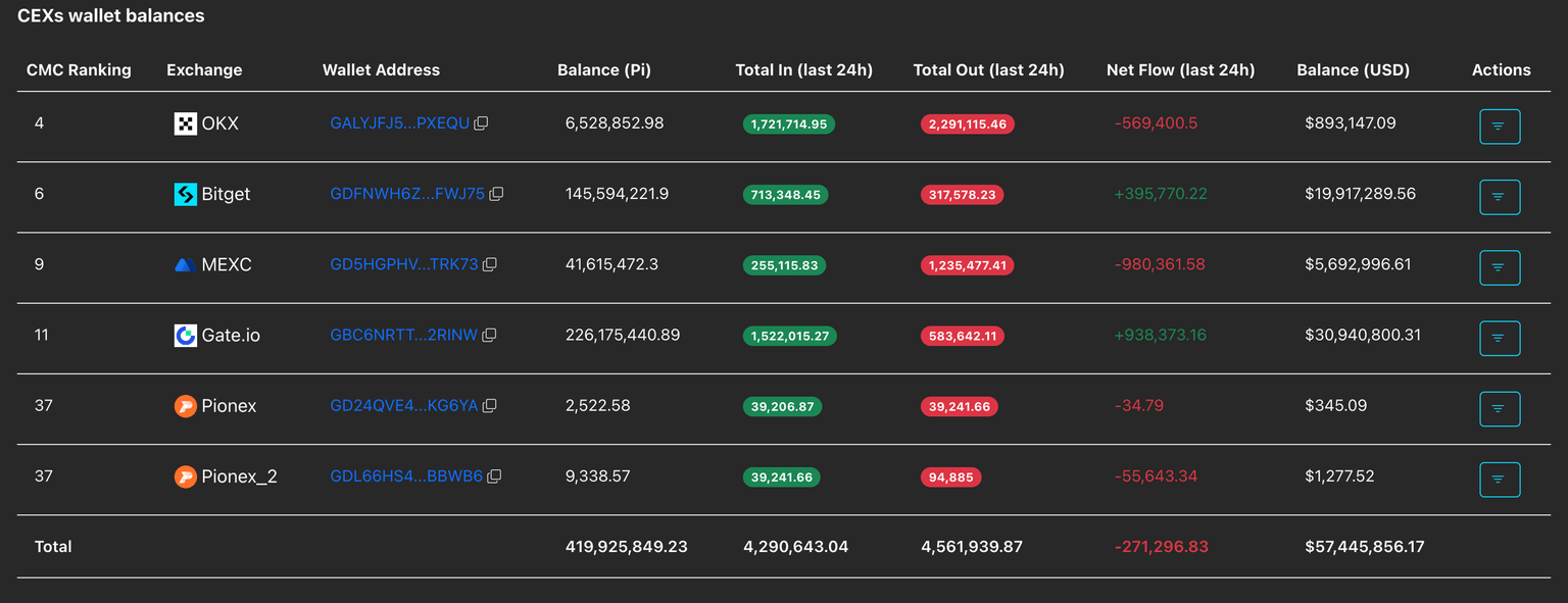 Los datos de PI scan muestran que los Intercambios Centralizados (CEX) han registrado un flujo neto de salida de 271.296 tokens PI en las últimas 24 horas, lo que sugiere una renovada presión de compra a medida que la confianza de los inversores se reconstruye.
