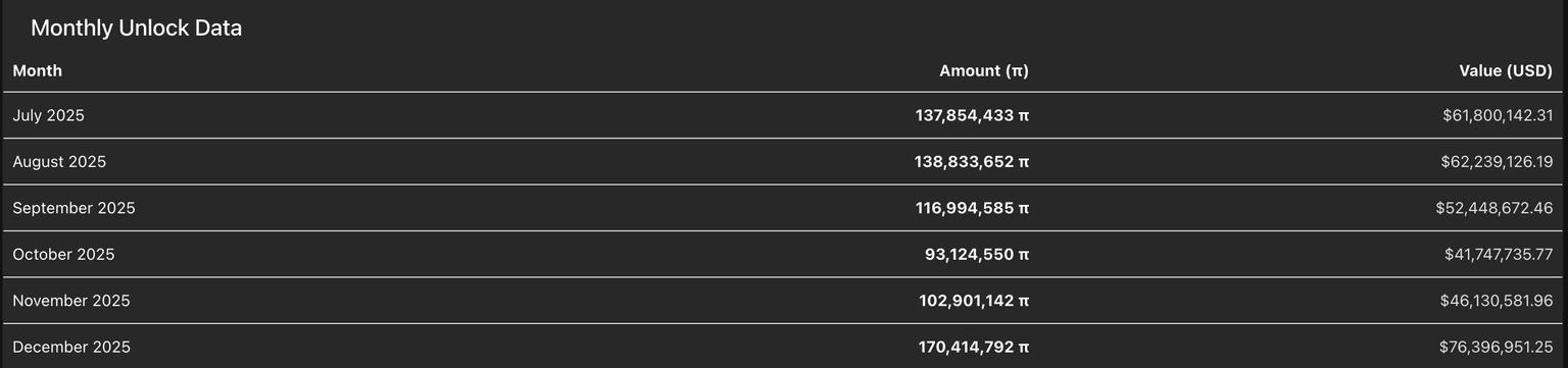 Estadísticas de desbloqueo de tokens de PI. Fuente: PiScan