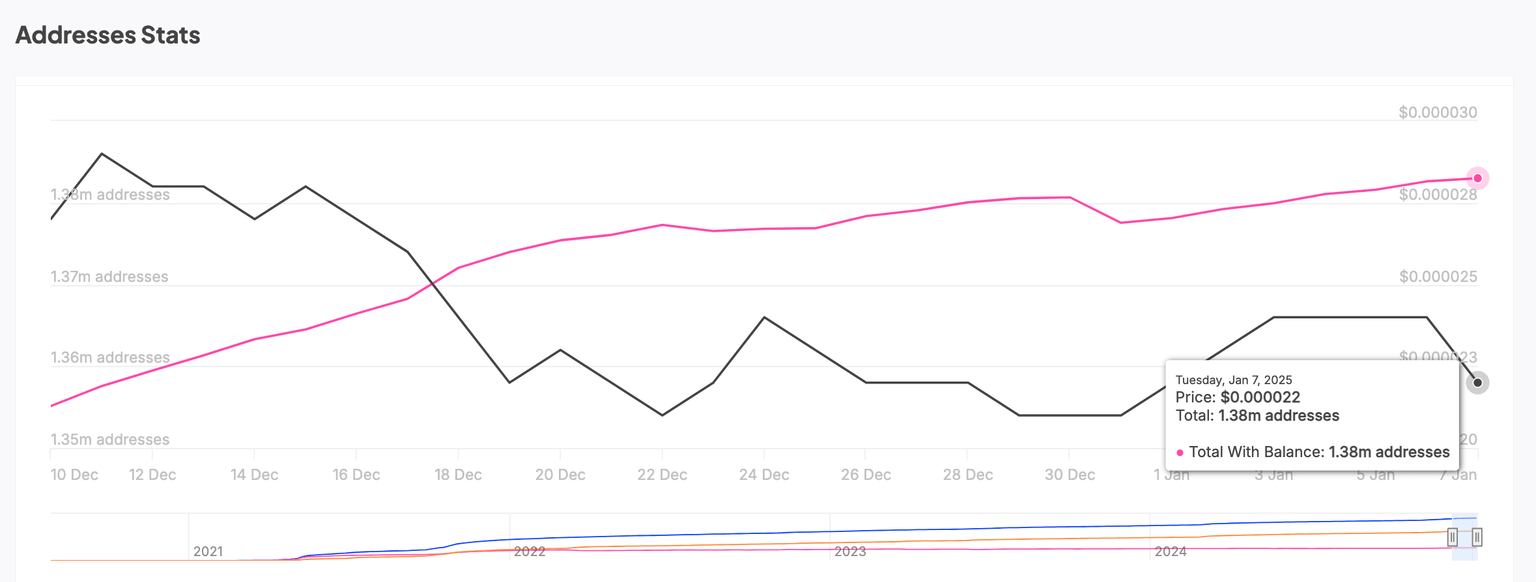 El número total de carteras financiadas que poseen SHIB ha alcanzado un máximo histórico de 1,38 millones, con más de 100.000 nuevas carteras añadidas solo en 2024.