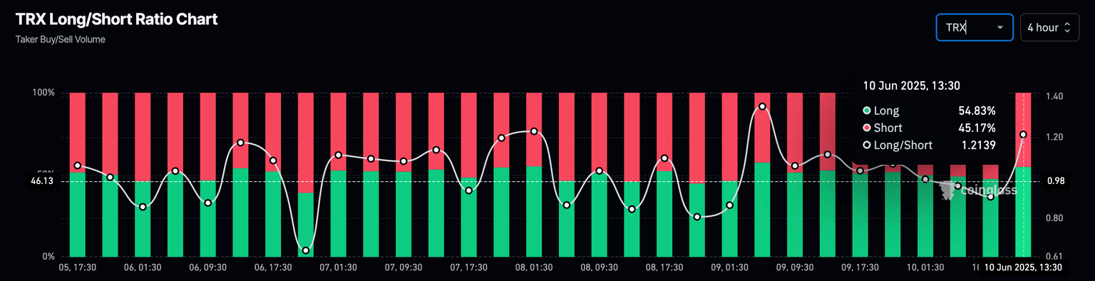 Gráfico de la relación Larga/Corta de TRX. Fuente: Coinglass
