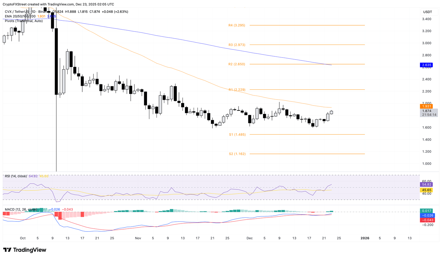 Convex Finance gana casi un 3% al momento de escribir el martes, construyendo sobre el salto de casi el 7% del día anterior. La EMA de 50 días en 1.93$ sirve como la resistencia inmediata para el rebote de CVX.