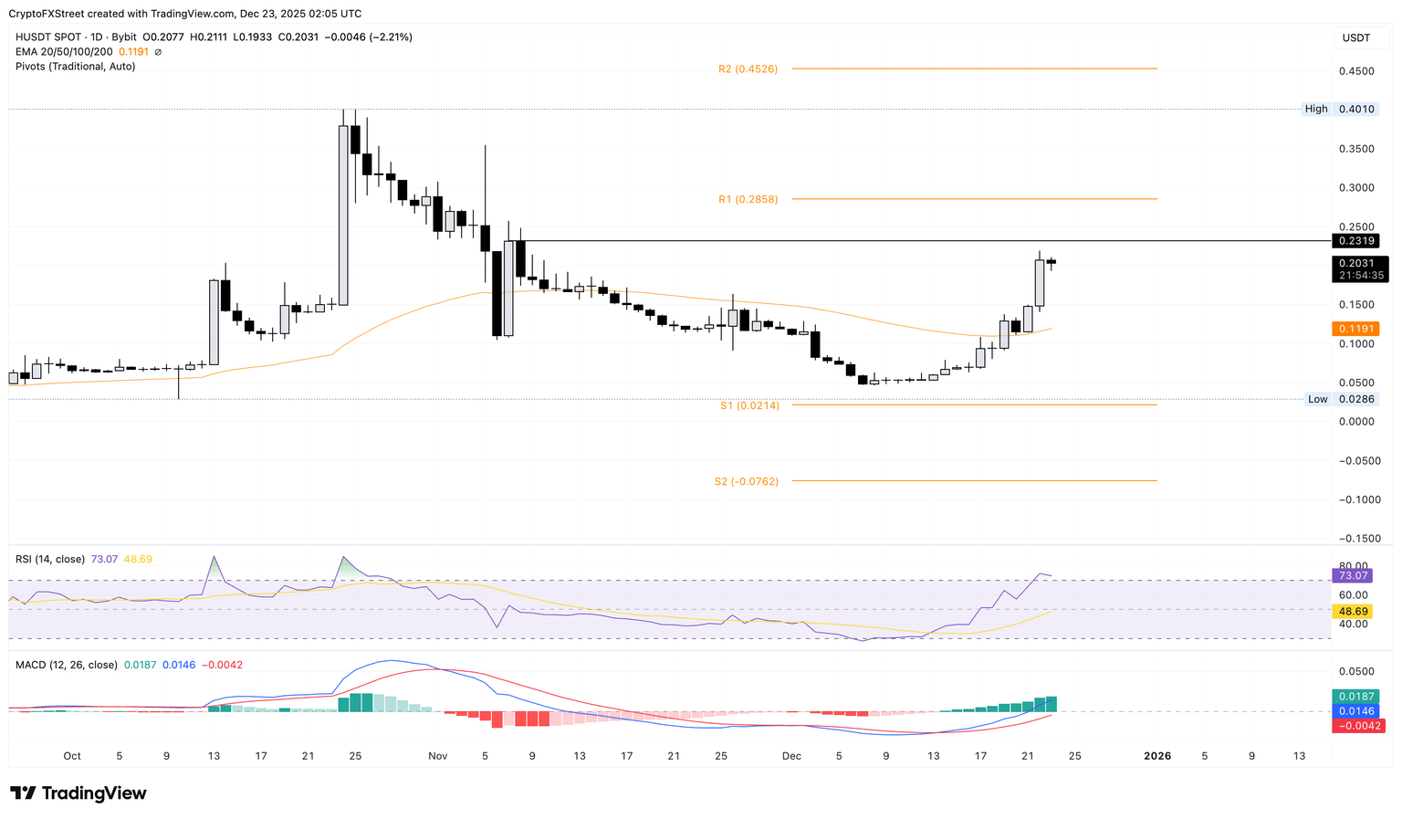 Si el altcoin supera este nivel, podría dirigirse al Punto de Pivot R1 en 0.2858$.