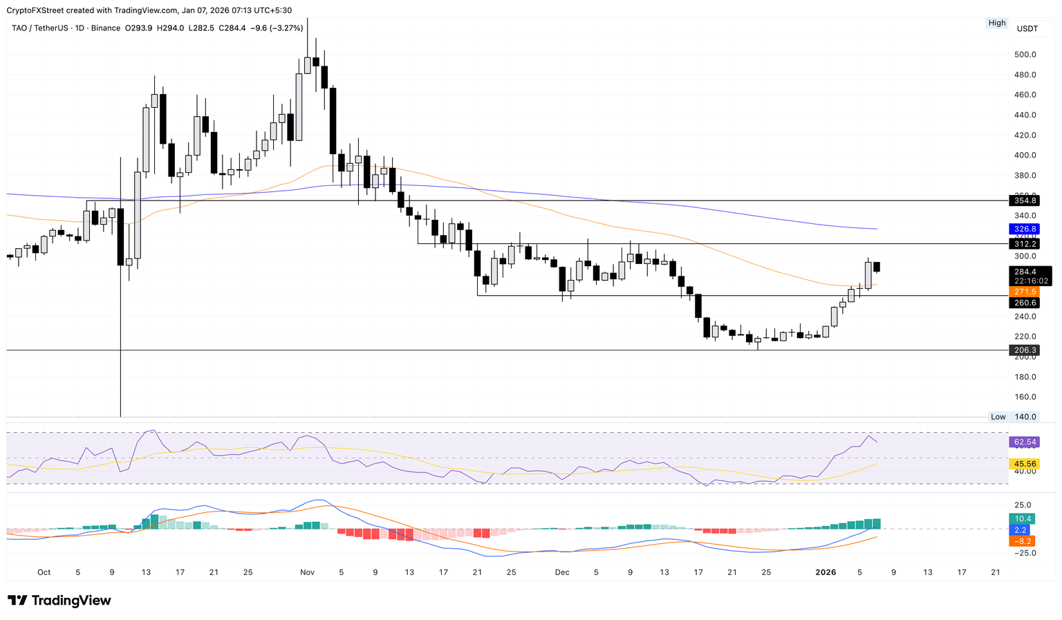 Si TAO recupera los 300$, podría tener dificultades para superar el nivel de 312$, probado por última vez el 12 de diciembre.