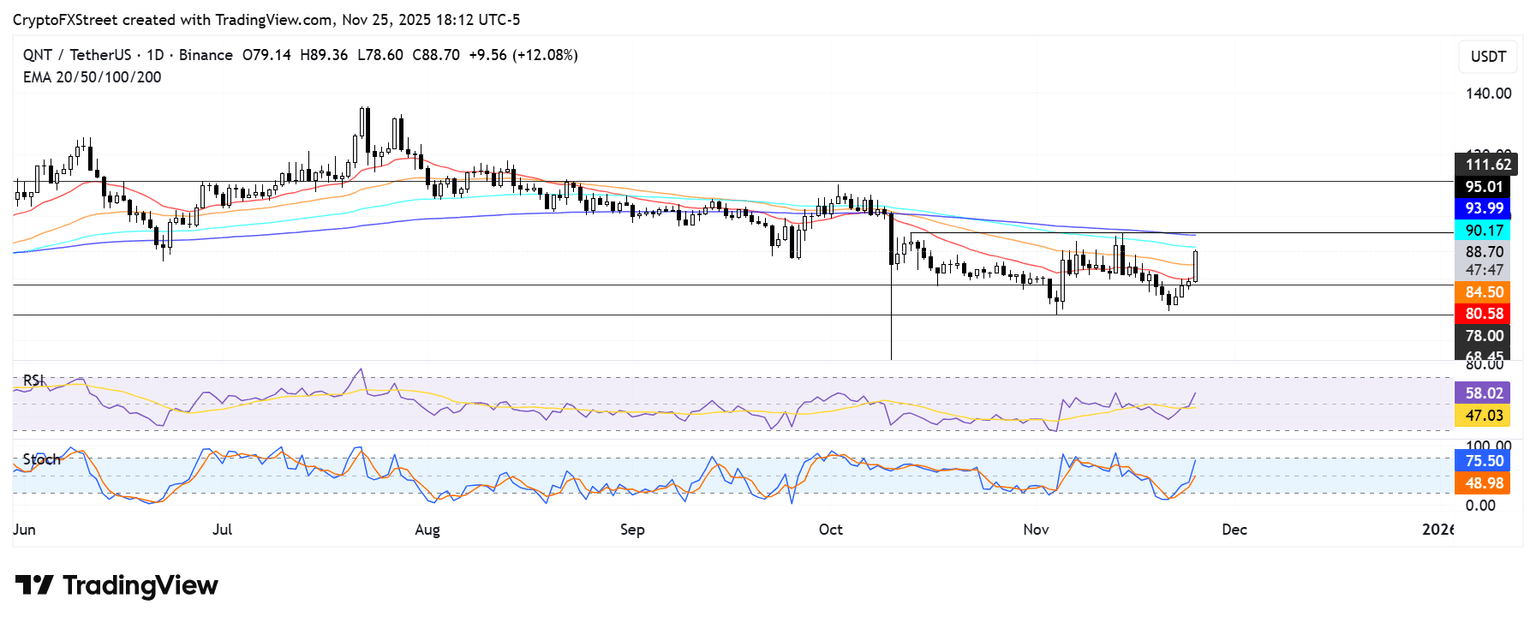 En la parte baja, QNT podría encontrar soporte alrededor de 78$. Más abajo, el soporte cerca de 70$ podría resultar crucial.