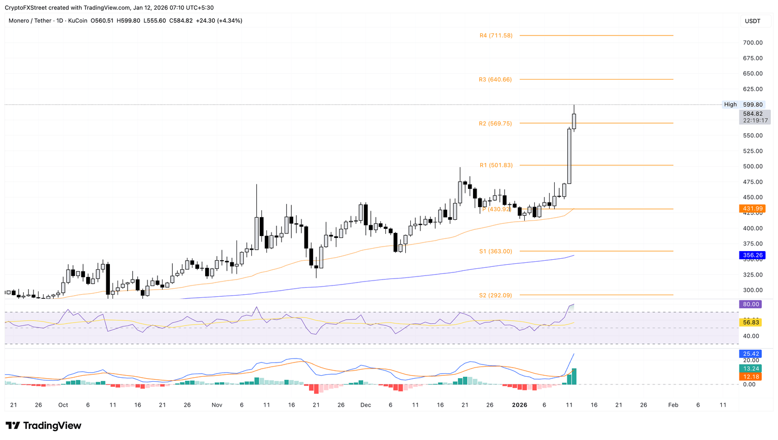 Si Monero supera la marca de 600$, podría extender la recuperación hacia el Punto Pivote R3 en 640$.
