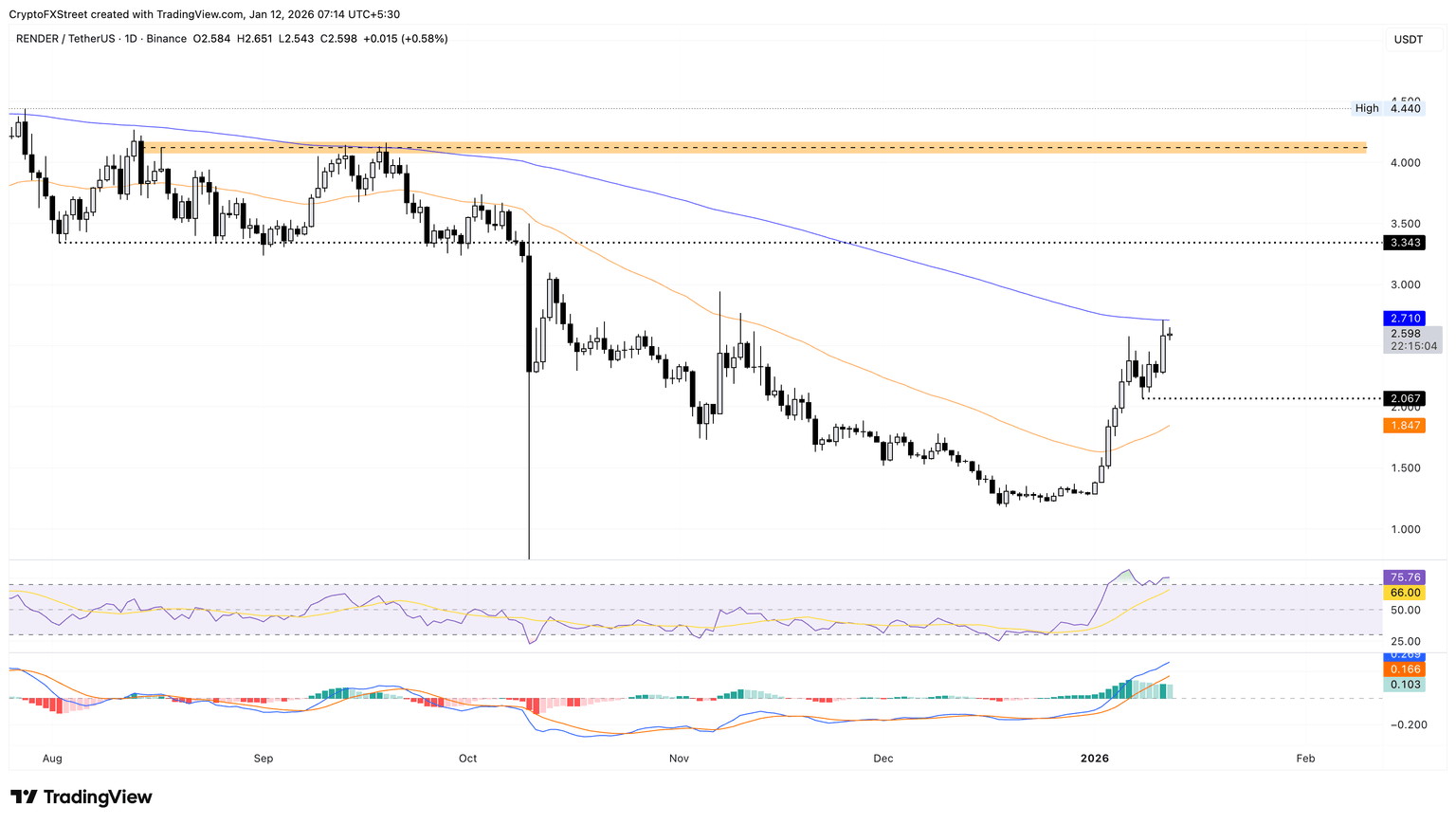 La recuperación de Render en enero alcanza la resistencia de la EMA de 200 días